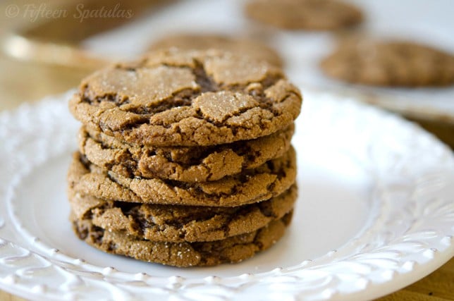 Today I bring you a recipe for one of my favorite EVER cookies, crinkled ginger molasses cookies. I developed these specifically so that they’re a cross between those puffy crinkle cookies and those flat chewy molasses cookies. They have a crisp edge and a super chewy inside, and I would liken the chewiness to a fudgy brownie kind of texture. It’s awesome.